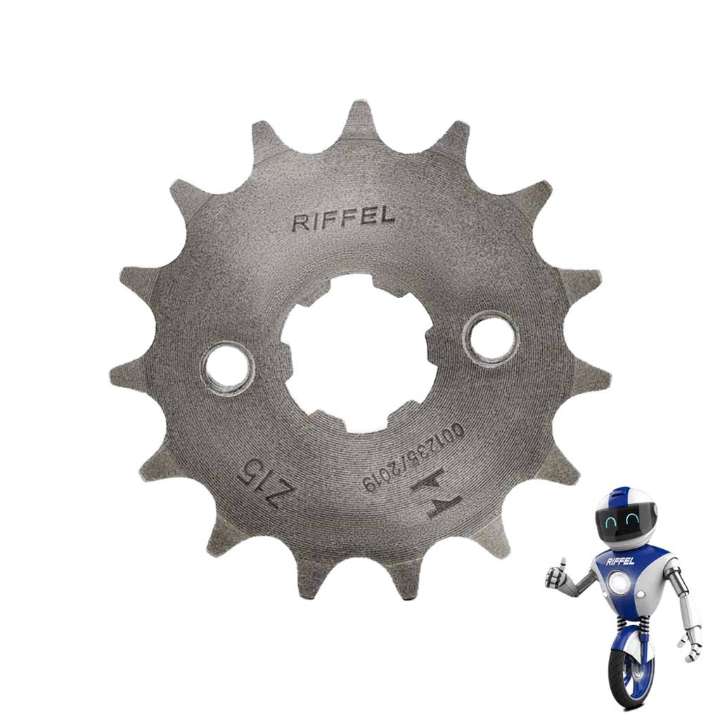 El Piñón de Ataque RIFFEL Haojue KA-150 es el repuesto premium que recupera la transmisión precisa y duradera en tu moto 150 cc. Disponible en Importadora Vini, este piñón de la reconocida marca RIFFEL está fabricado en acero especial de alta aleación con tratamiento térmico y dientes endurecidos que resisten desgaste, elongación y fatiga extrema. Además, su diseño con 15 dientes y paso de cadena 428 ofrece una relación optimizada para el uso original. Por lo tanto, es ideal para reparaciones por piñón desgastado, cadena estirada o cuando se busca mayor durabilidad en ruta o uso intensivo.
